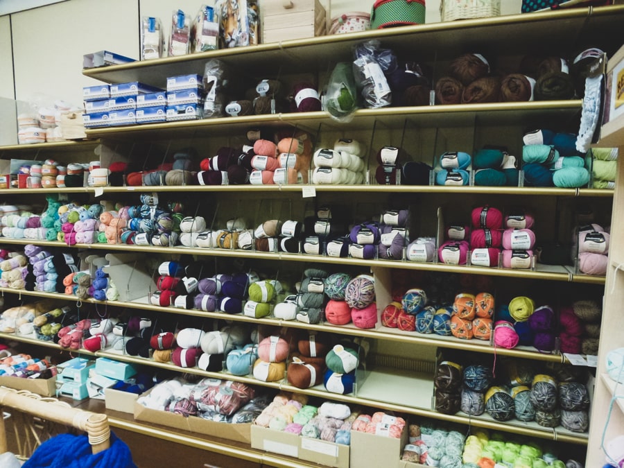 Neben dieser großen Auswahl an Stickgarnen führen wir auch ein Sortiment an Häkelgarnen und Strickwollen.