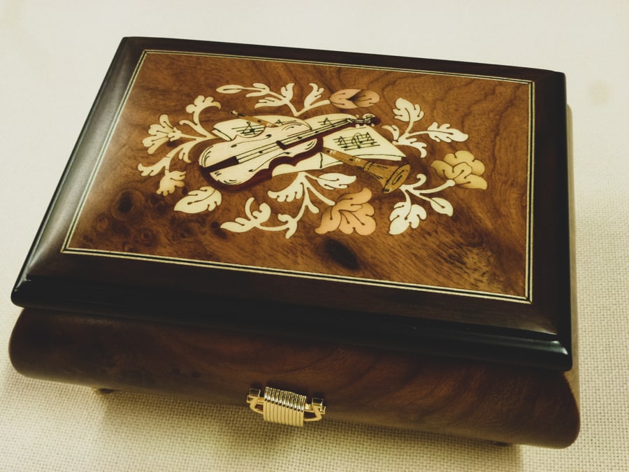 Ein würdiges Behältnis für unsere Spieluhren stellen die hochwertigen und in Handarbeit hergestellten Kassetten dar. Sie kommen aus Sorrent in Italien und können, besonders was die Einlegearbeiten anbelangt, qualitativ nicht überboten werden.